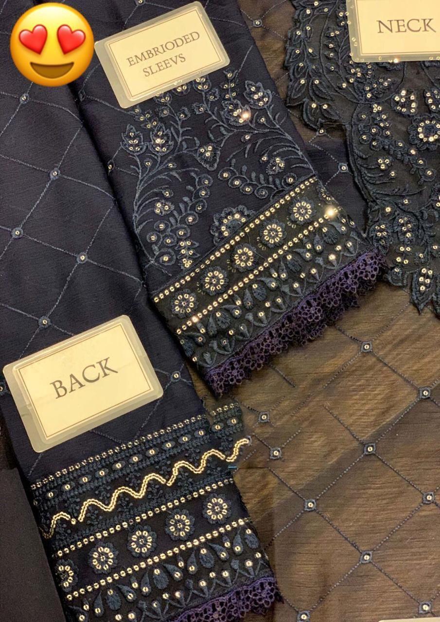 - Shirt: Crafted from premium chiffon, the shirt is beautifully embroidered on the front, back, neckline, and sleeves, offering a sophisticated and graceful look.