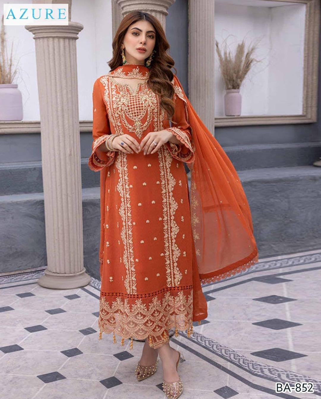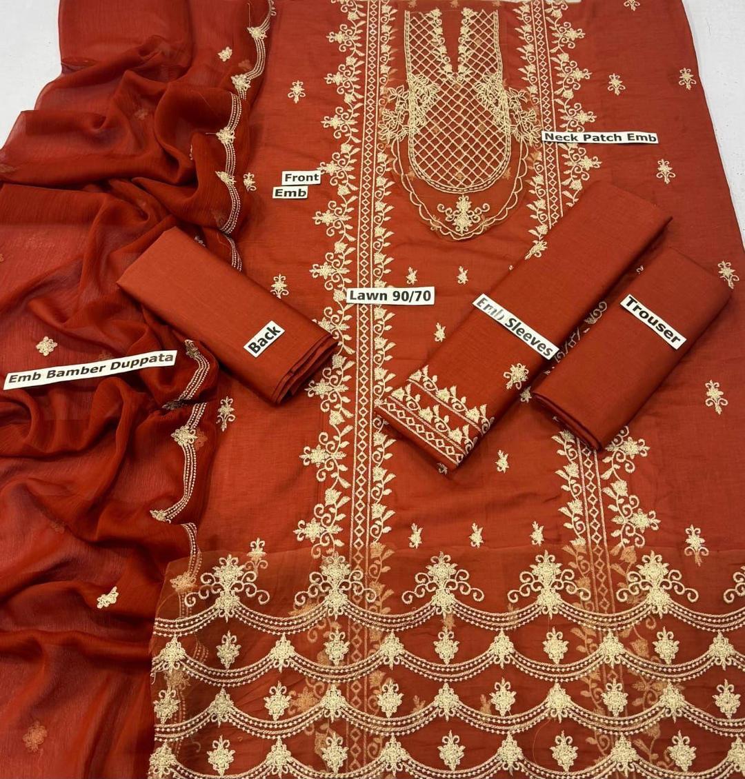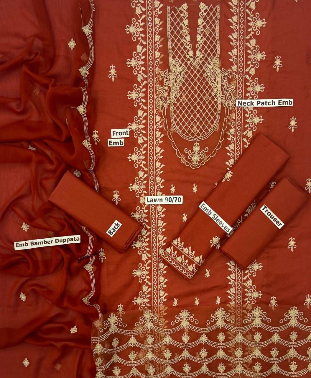 Embroidered Lawn – 3 Piece Suit (Orange)